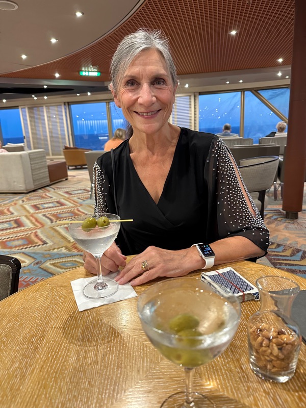 We had lunch in the dining room walked laps around the promenade, played cards and enjoyed another dinner chatting with Mark and Barb from Calgary.